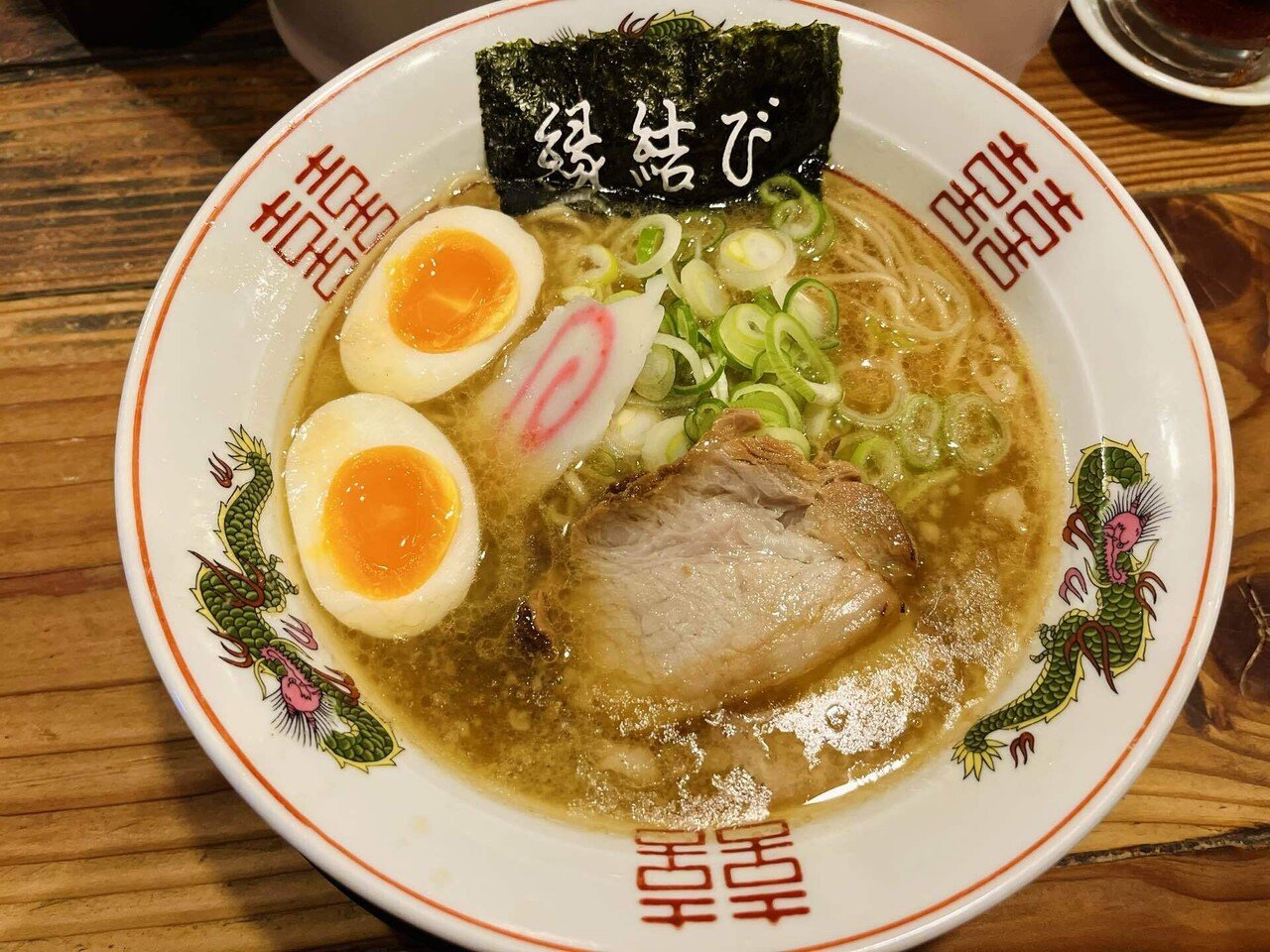 同行した弟は「お紫ラーメン」を注文。こちらは青龍とは正反対で、個性の強い一杯だ。豚骨の香りが立ち上がり、博多ラーメンのような雰囲気がある。濃厚でパンチがあるが、くどさはなく、後半まで美味しく食べられるタイプだ。