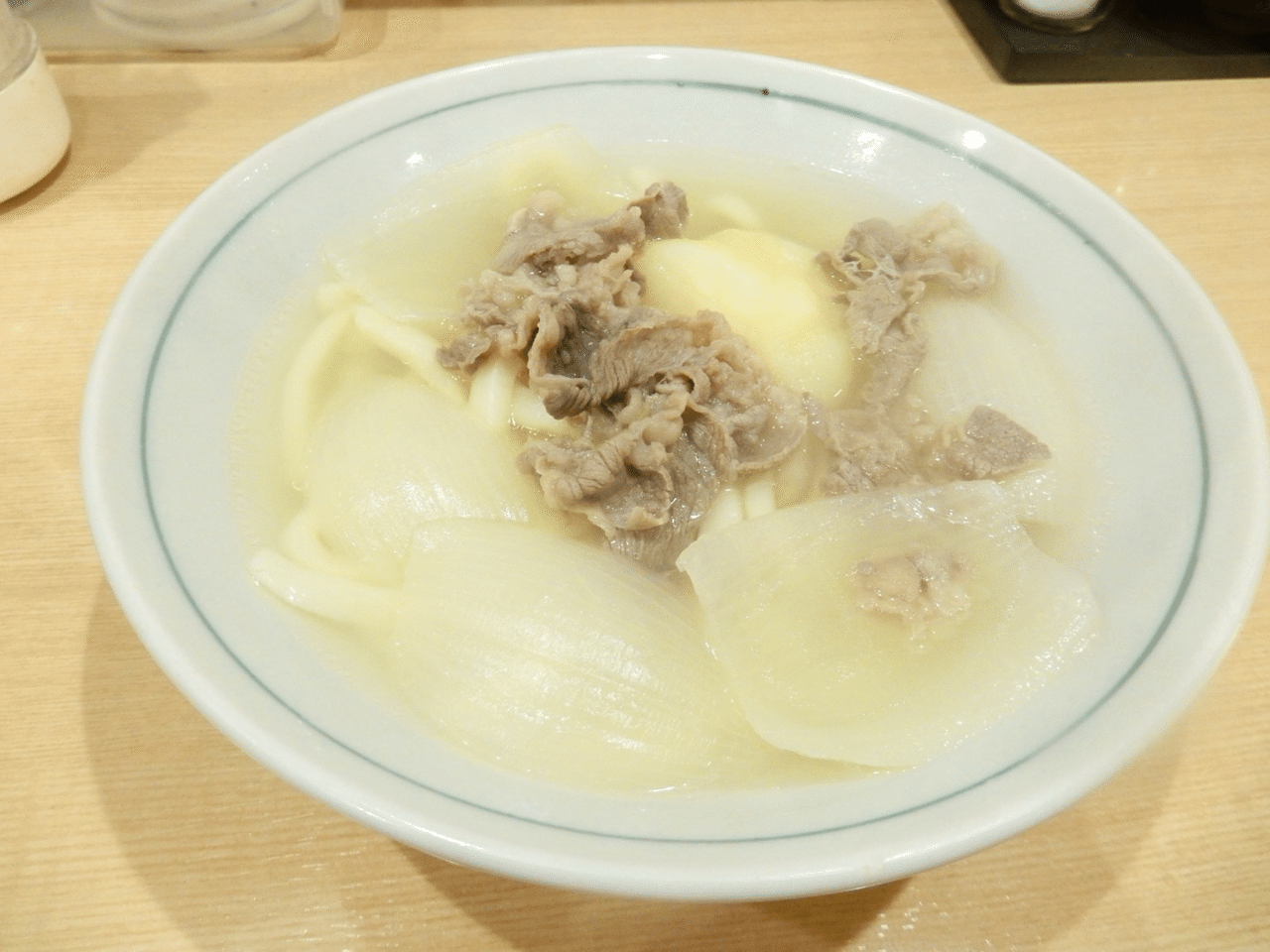 雨が静かにガラスを叩く音の中、名物の「シチューうどん」500円を頼む。湯気が立ちのぼり、塩の香りがふっと鼻をくすぐる。透き通る出汁。牛肉、玉ねぎ、じゃがいも。その三つだけが、器の中で寄り添うように浮かんでいる。一口すすれば、驚くほどの優しさ。日本でいちばんあっさりして、日本でいちばん旨い。昆布でも鰹でもない。塩だけの勝負。だからこそ、麺の力強さが際立つ。牛肉の脂と、玉ねぎの甘みと、じゃがいものほろりとした舌触りが、塩の海でひとつになる。全員が主役で、全員が支え合う。“侍ジャパン”のような、完璧なチームワーク。このうどん、最強なり。