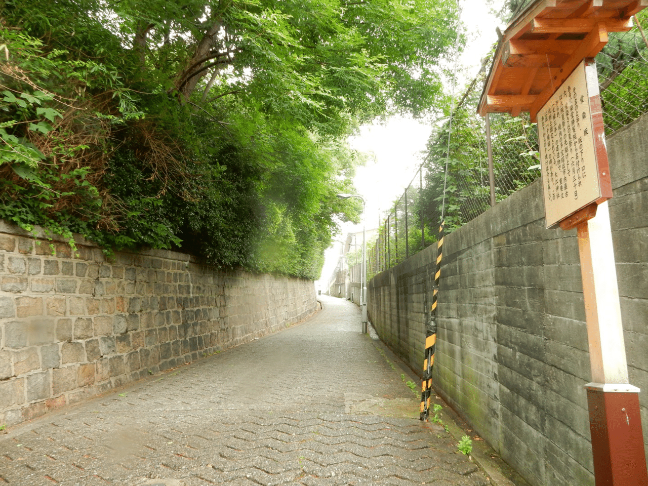 天王寺七坂のなかでも愛染坂は少しわかりにくい。松屋町筋を路地裏に入り、道なりに曲がると愛染坂の立て看板が目印になる。少し登れば、そこに愛染堂がある。