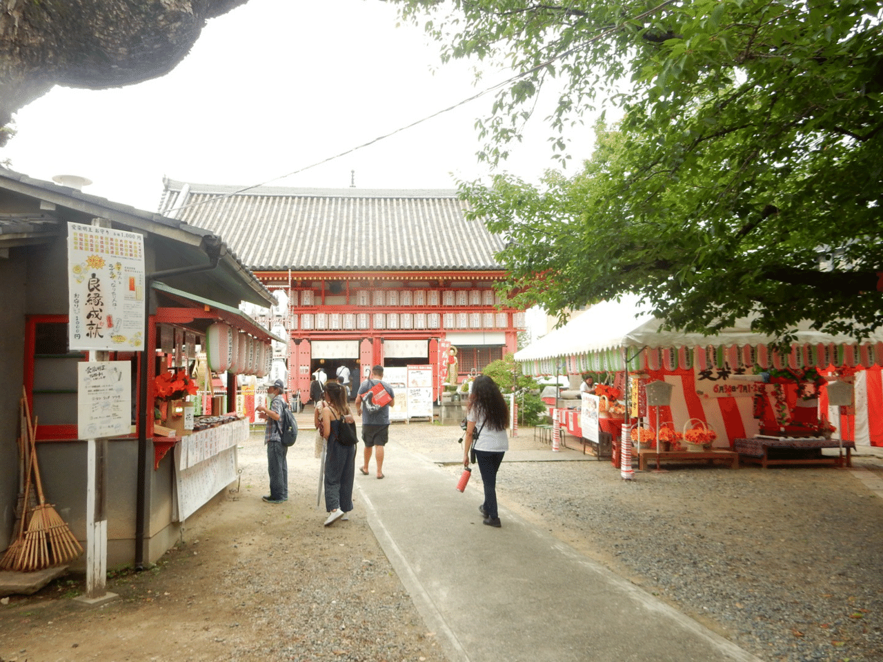 愛染まつり。天神祭、住吉祭に並ぶ大阪三大夏祭り。だんじり祭りなど男のイメージが強い大阪で、愛染まつりの主役は愛染娘。聖徳太子の時代から1400年以上続き、勝鬘院(しょうまんいん)金堂の御本尊・愛染明王にあやかって「愛染さん」で親しまれる。