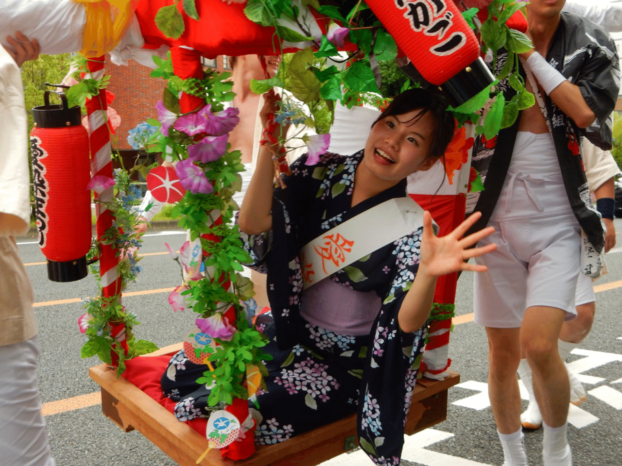 愛染堂を飛び出し、パレードを見に向かう。1.5キロの道のりを祭囃子が彩っていた。