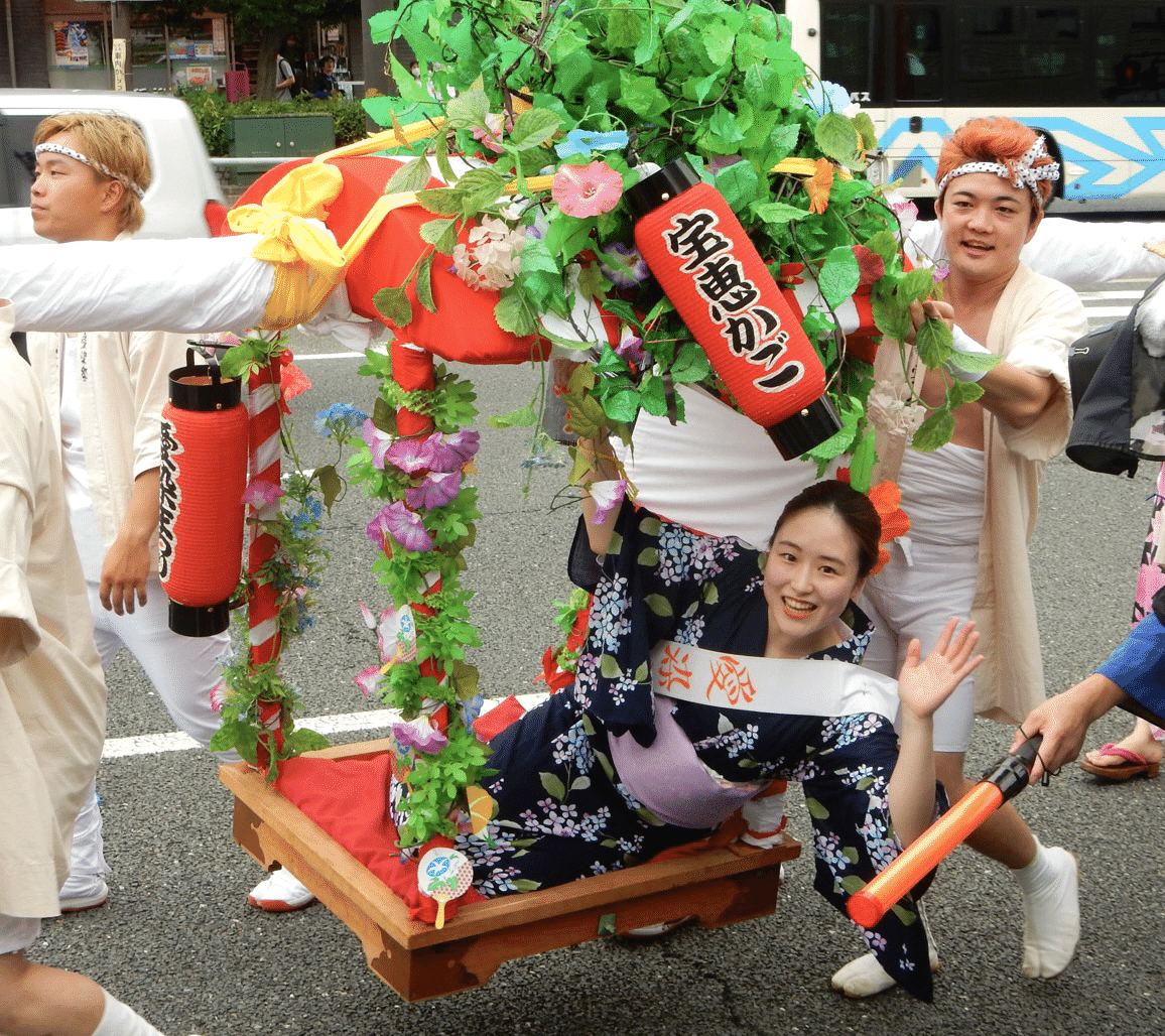 宝恵駕籠(ほえかご)は西日本の神社周辺で掛け声をかけながら駕籠を担いでまわる行列のこと。勇ましい男衆が女性を運ぶ。