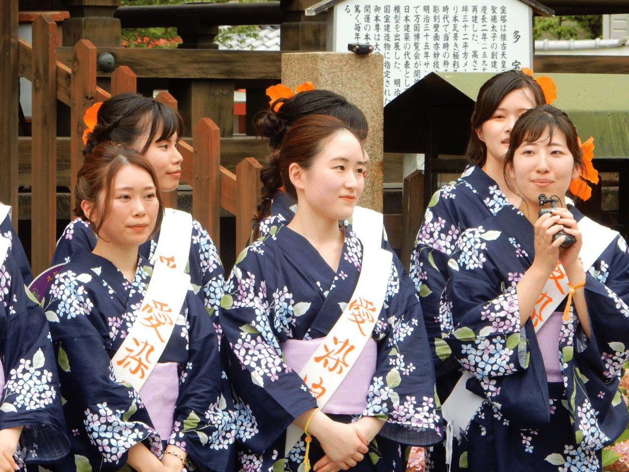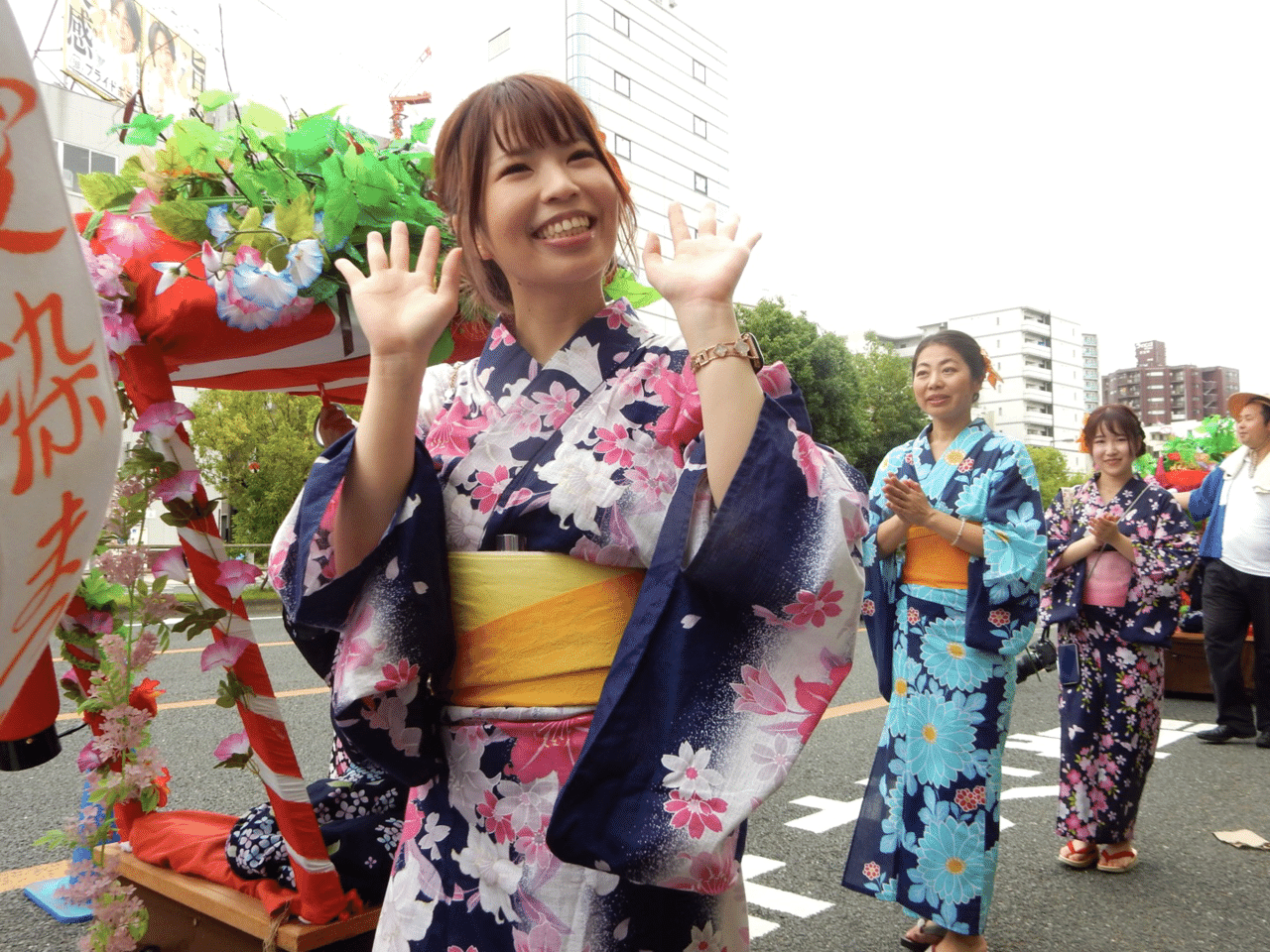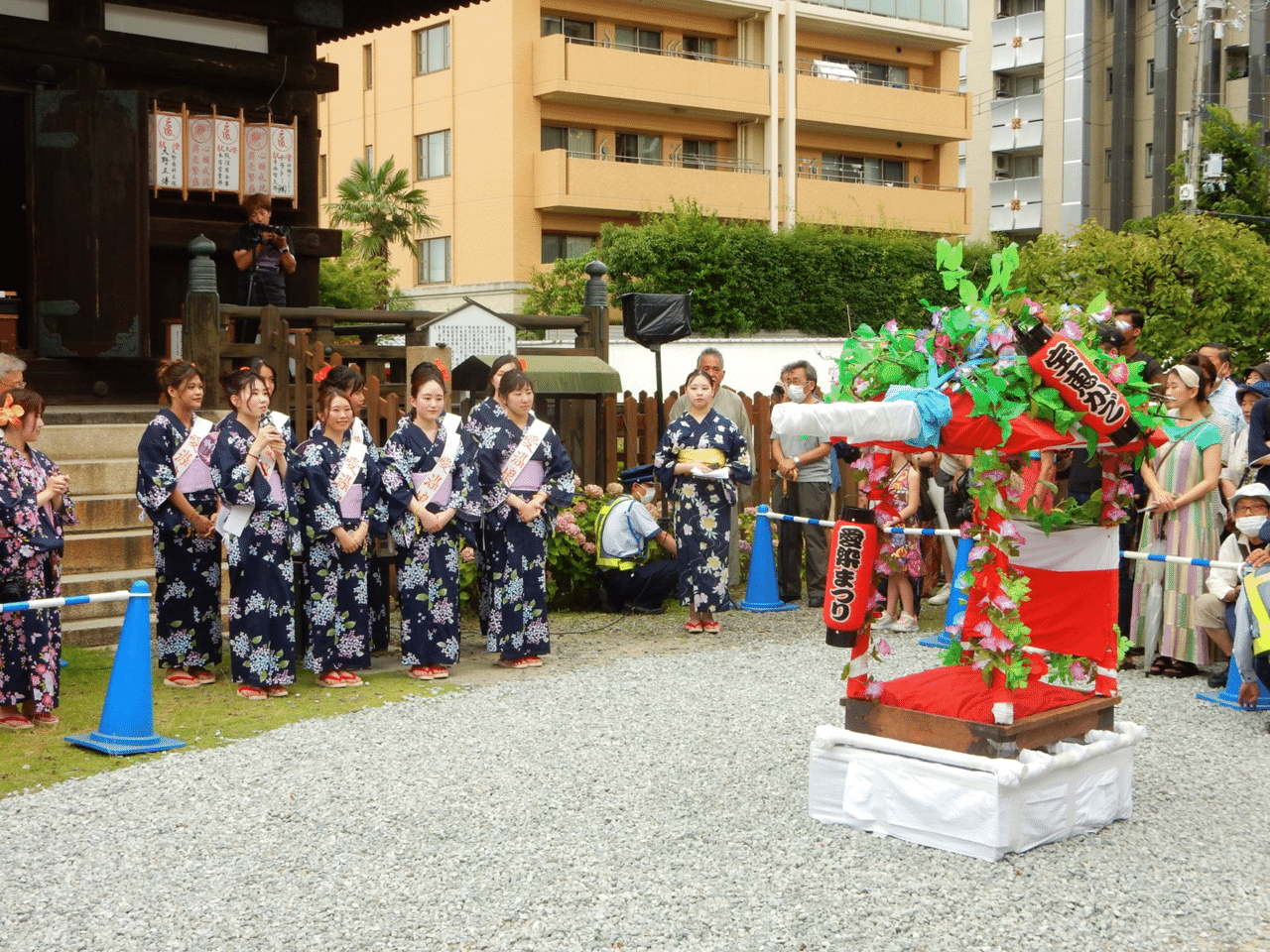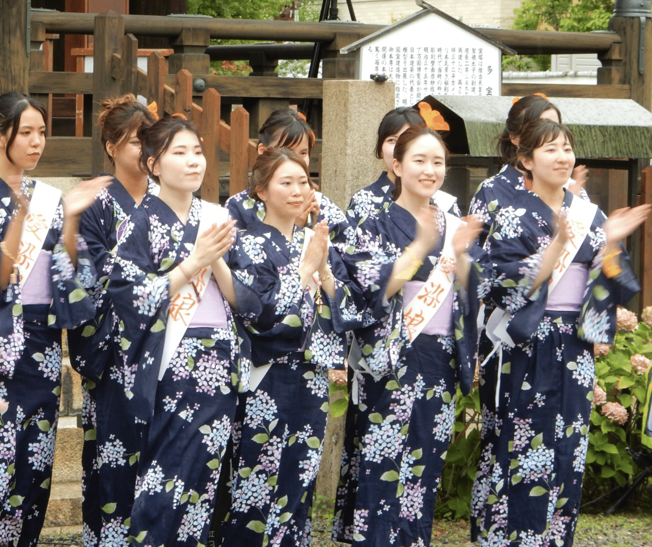 愛染まつりで浴衣をおろすのが地元の習わし。 その年、初めて浴衣をおろし、浴衣姿を愛染さんにお披露目。大阪の夏の訪れを告げる。