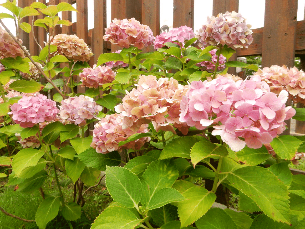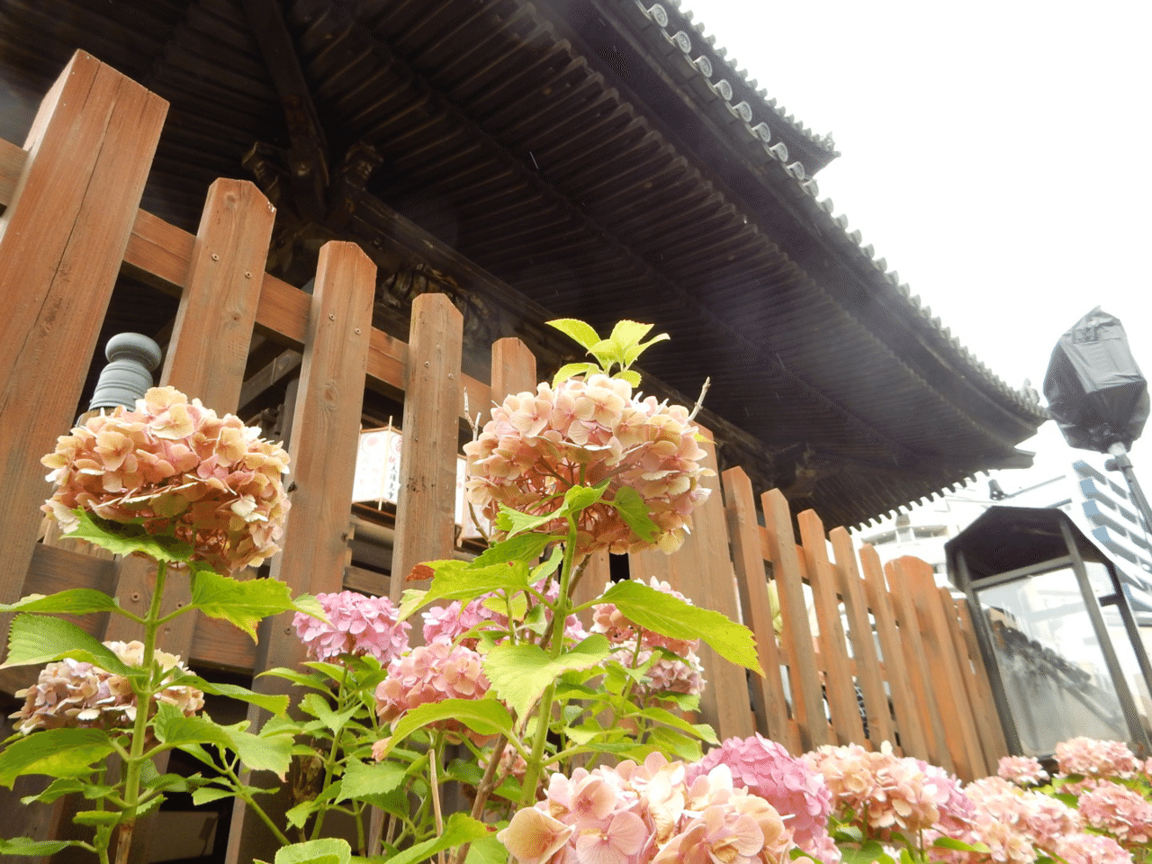多宝塔のピンクやオレンジの紫陽花も愛染娘の到着を待っている。