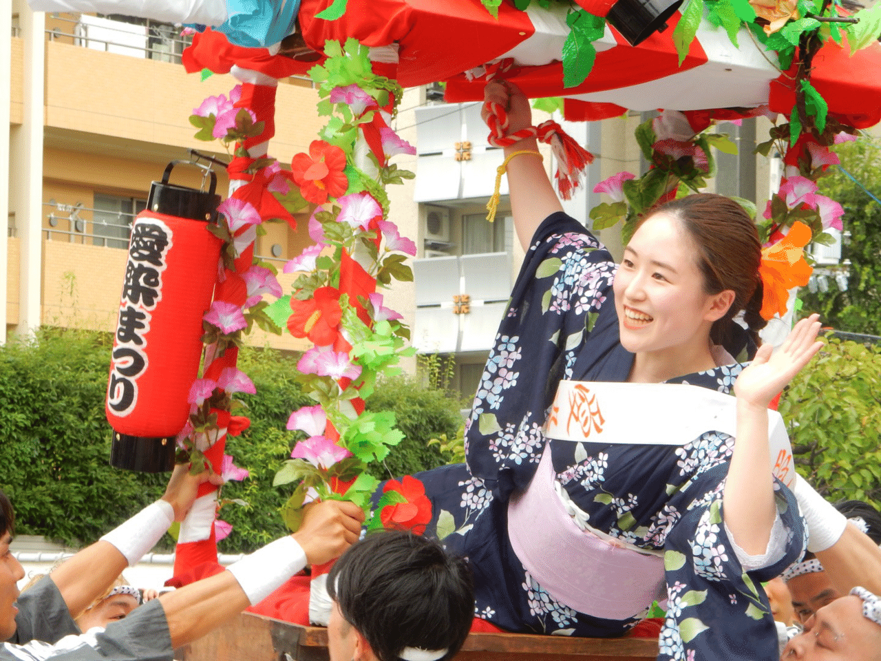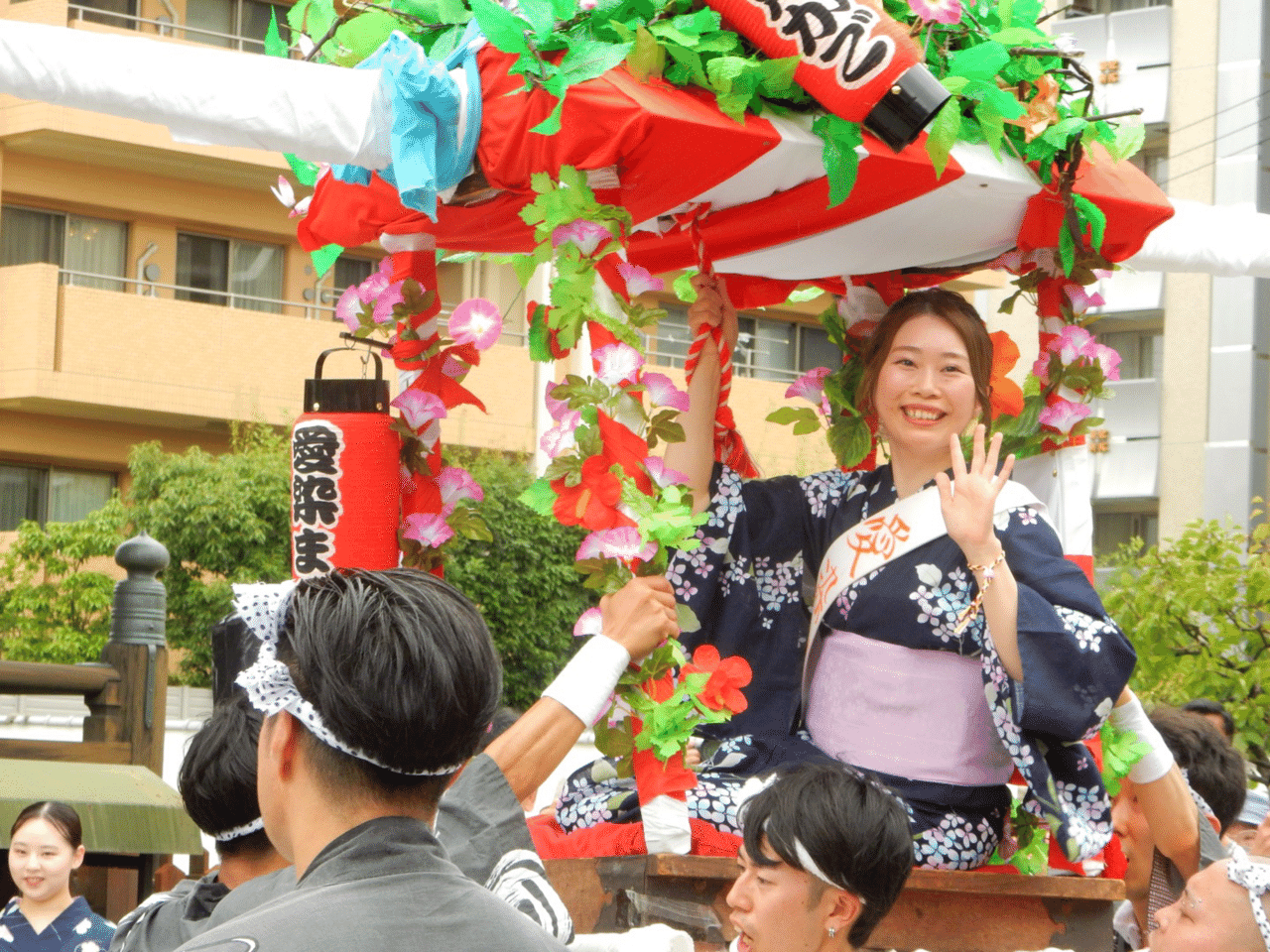 多宝塔の前のステージでミス愛染娘を決めるコンテストがある。けど今年はなし。残念。