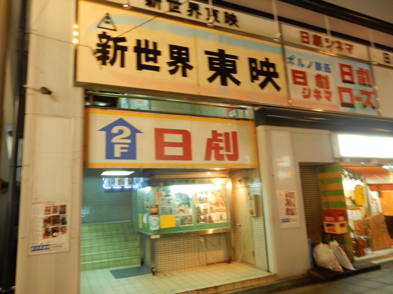 オールナイトの映画館は味がある。受付のおっちゃんの愛想がいい。接客がいいと気分上々。新世界東映の扉を開けるには、隣の日劇シネマ(成人映画館)を通る。ドアの前でも喘ぎ声がいつも聴こえる。つい覗きたくなる。