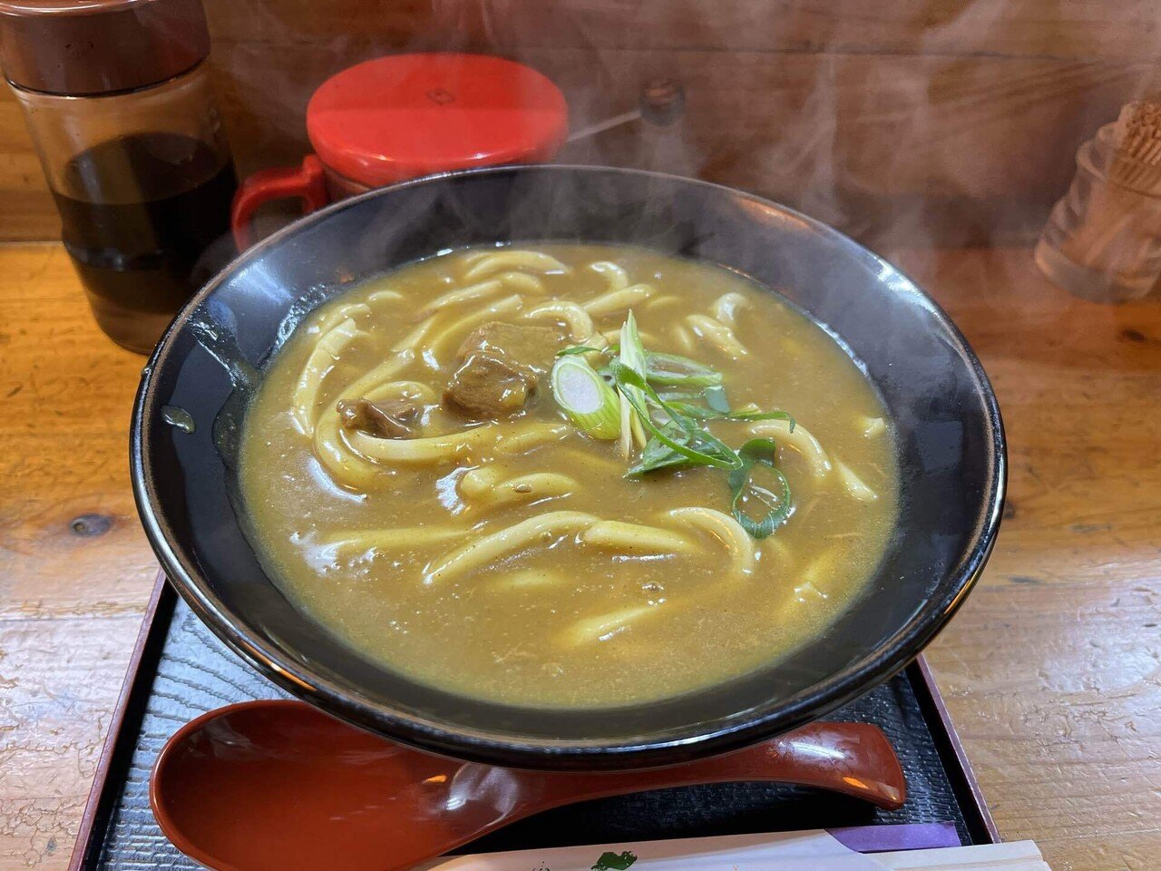 そして、もう一つの名物が「カレーうどん(780円)」だ。もともとはまかない料理だったが、常連客の「それ食べたい」という一言から定番メニューに昇格した。ビーフカレーに和風出汁を合わせ、注文ごとに一杯ずつ仕上げる。食べ進めている間は意外なほどあっさりとしているのに、後半になると体が内側から熱を帯び、口の中にはカレーの深い余韻が残る。うどん文化の大阪にあって、カレー専門店ならではの技が光る一杯だ。