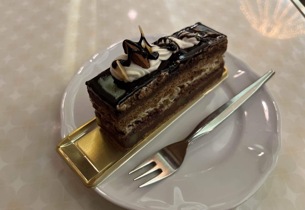 「オペラ」と名づけられたケーキは、重ねられた層が豪華絢爛なパリのオペラ座を思わせる逸品で、日本一とも評される完成度を誇る。店内のクラシカルな装飾と響き合い、まさに“甘さの聖域”と呼ぶにふさわしい一皿だ。