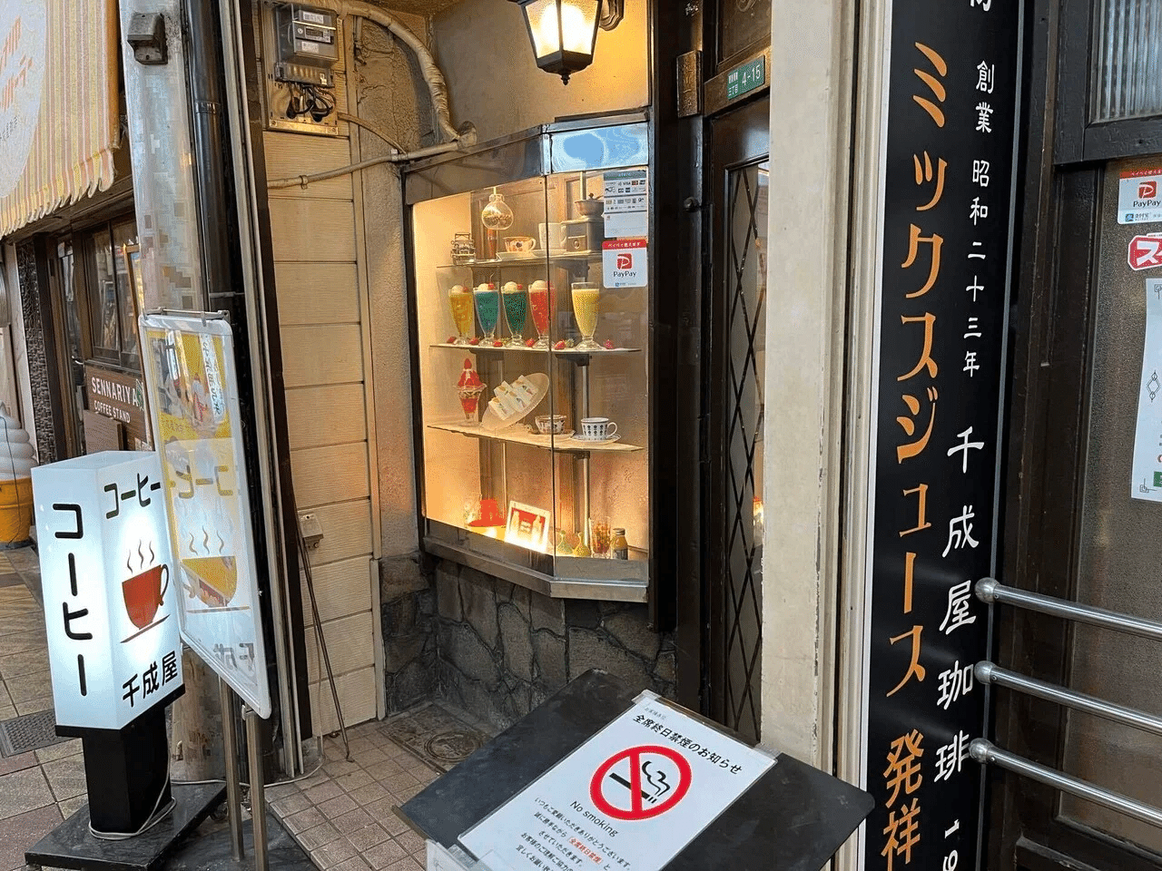 「千成屋珈琲」。昭和23年、1948年創業。ミックスジュース発祥の店だ。
