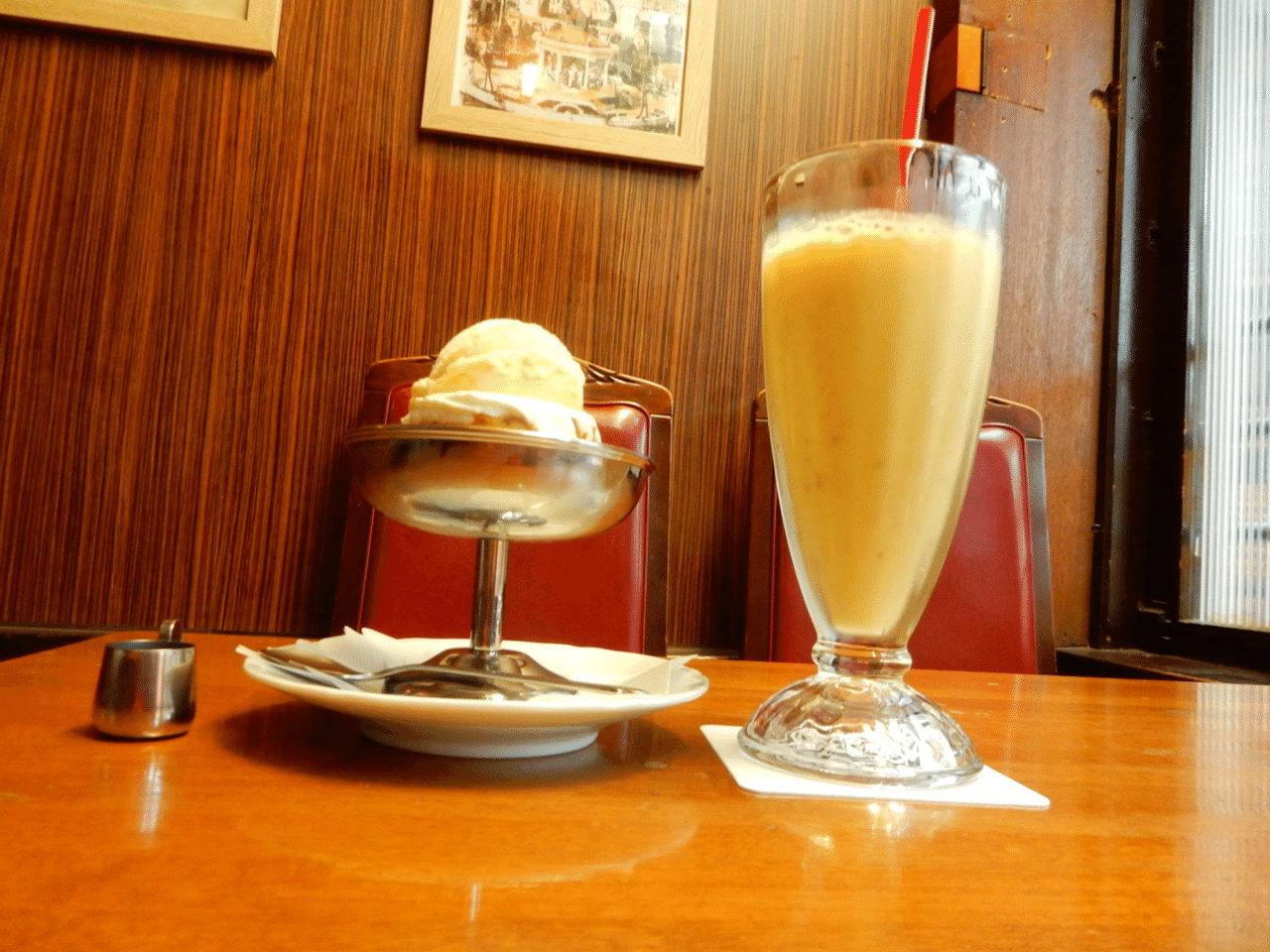 昭和の女給がエプロン姿で写るモノクロの写真もある。その瞳の奥には、果物の香りとミキサーの音がまだ生きている気がした。