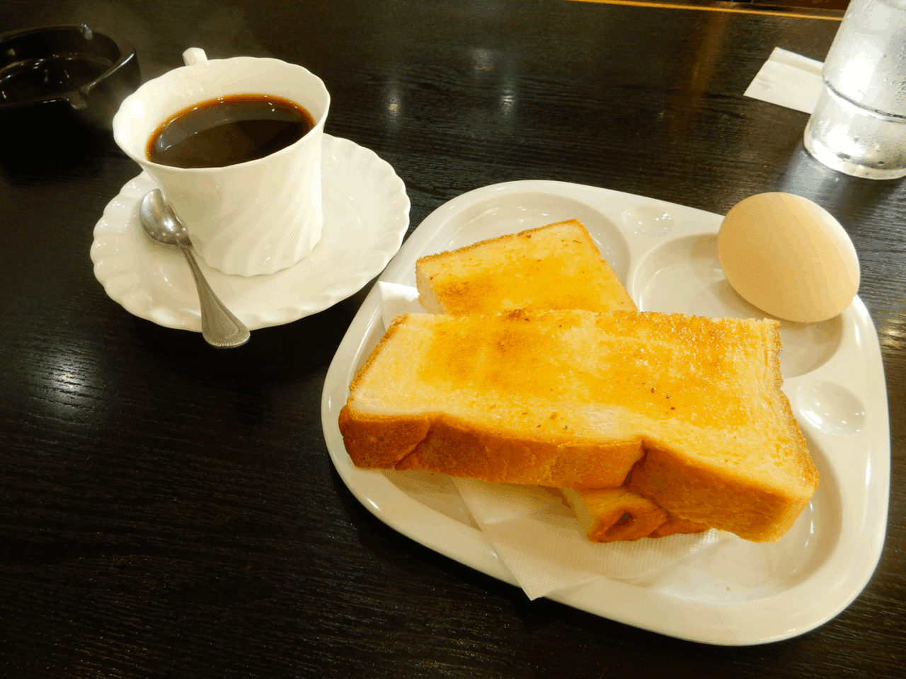 モーニング。400円。ゆで卵が半熟の手前で美味しい。トーストのジュワッとバターが来る感じとホット珈琲のやさしさが合う。