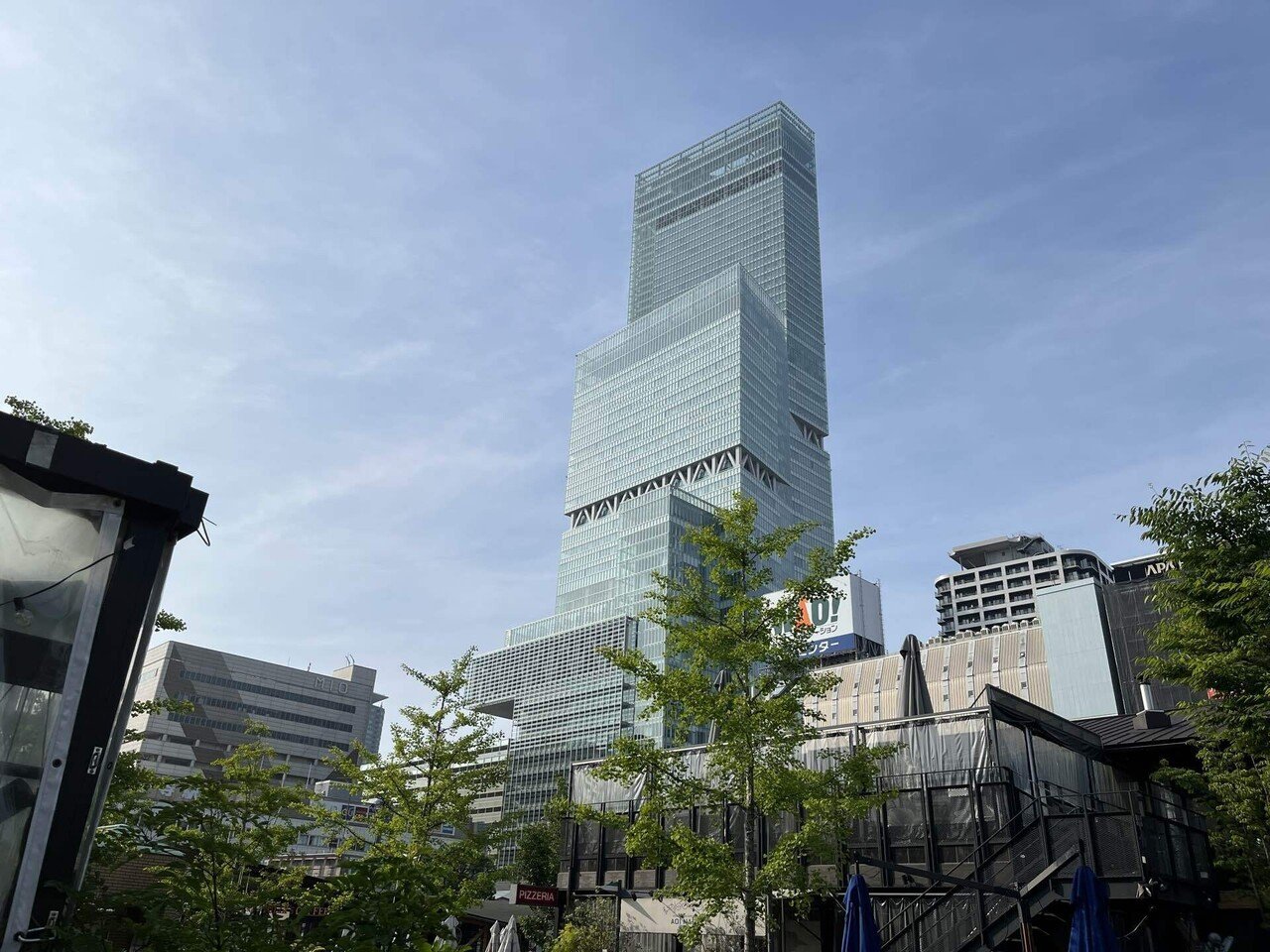 7時13分、予定より13分遅れで到着。車内のガンガンに効いた冷房から8時間ぶりに解放された。眠気まなこをこすると眼前に、あべのハルカス。大阪のミナミという感じがしない。周囲を見渡したが、通天閣の姿はなかった。