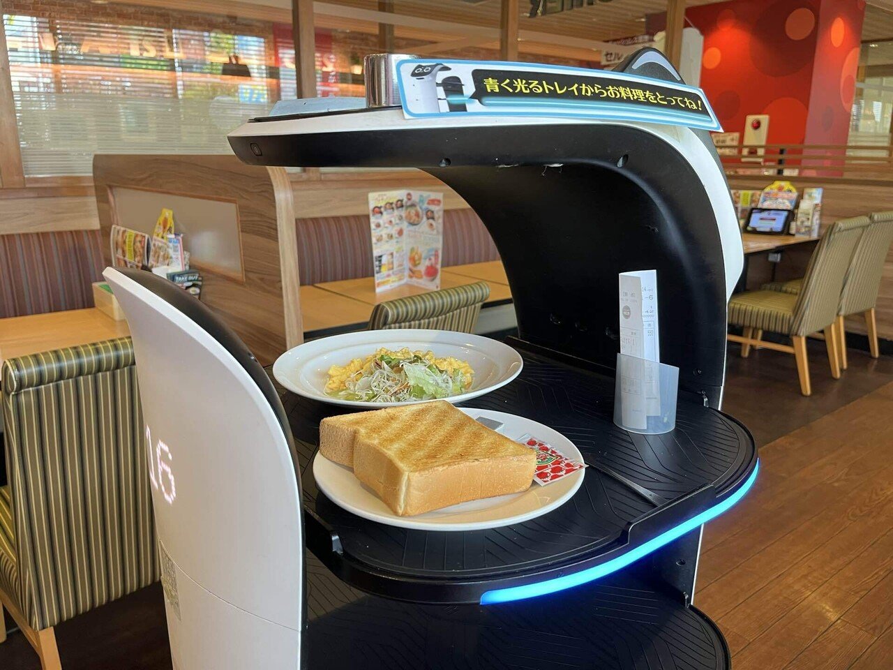 朝食のモーニングセットもロボットが運んできた。ライターの下積みをしていた10年前はデニーズによく来たが、今のファミレスはこんなに進化しているのか。小学生の頃は入り口に並べられたお菓子、おもちゃコーナーばかり見ていた。親に買ってもらえなかったが、働いて自分で買える歳になったら興味がなくなった。人生は不思議なもの。
