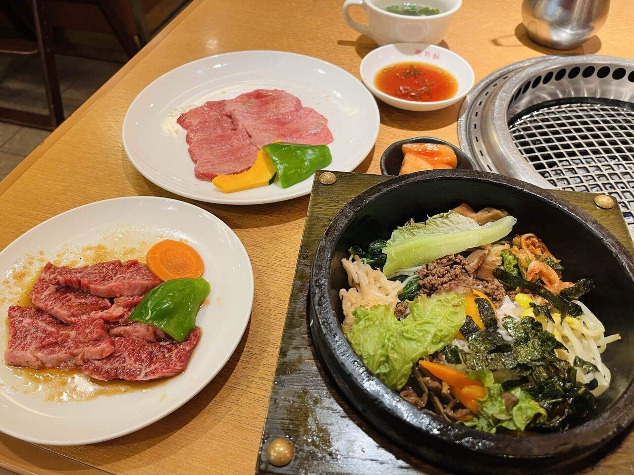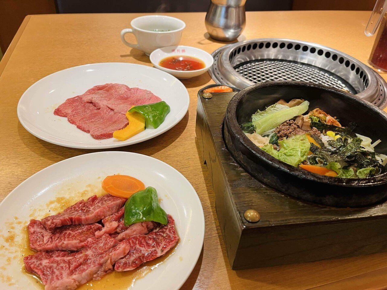 石焼ビピンパのランチセット1,000円に、侍ジャパンが食べた上ハラミ2,530円、塩タン2,145円を配球。トータル5,675円。超贅沢なランチ。韓味彩宴。