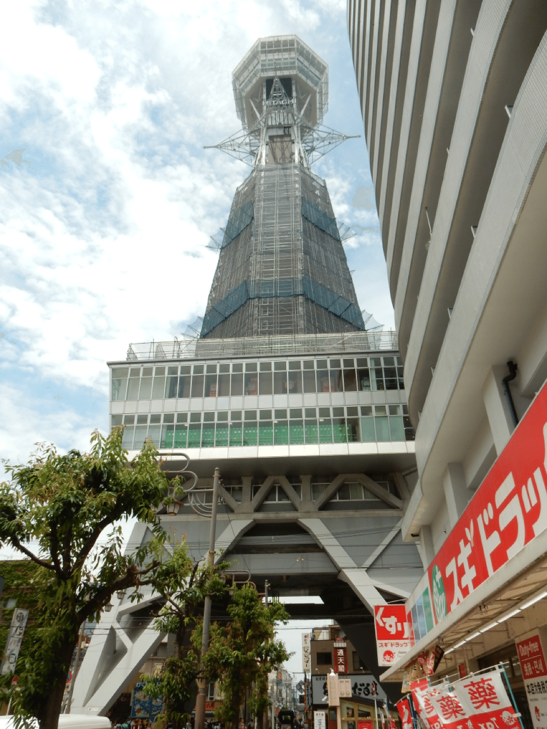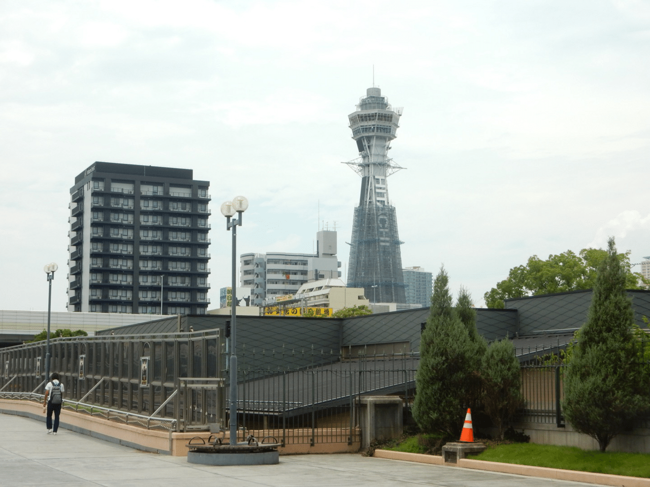 本当なら新世界まで歩きたいが、大きな荷物を持って身体が溶けそうな炎天下を歩くのはキツイ。鶴橋から再び環状線に乗って天王寺へI'll be back。天王寺公園の先に通天閣が見える。やっと逢えた。