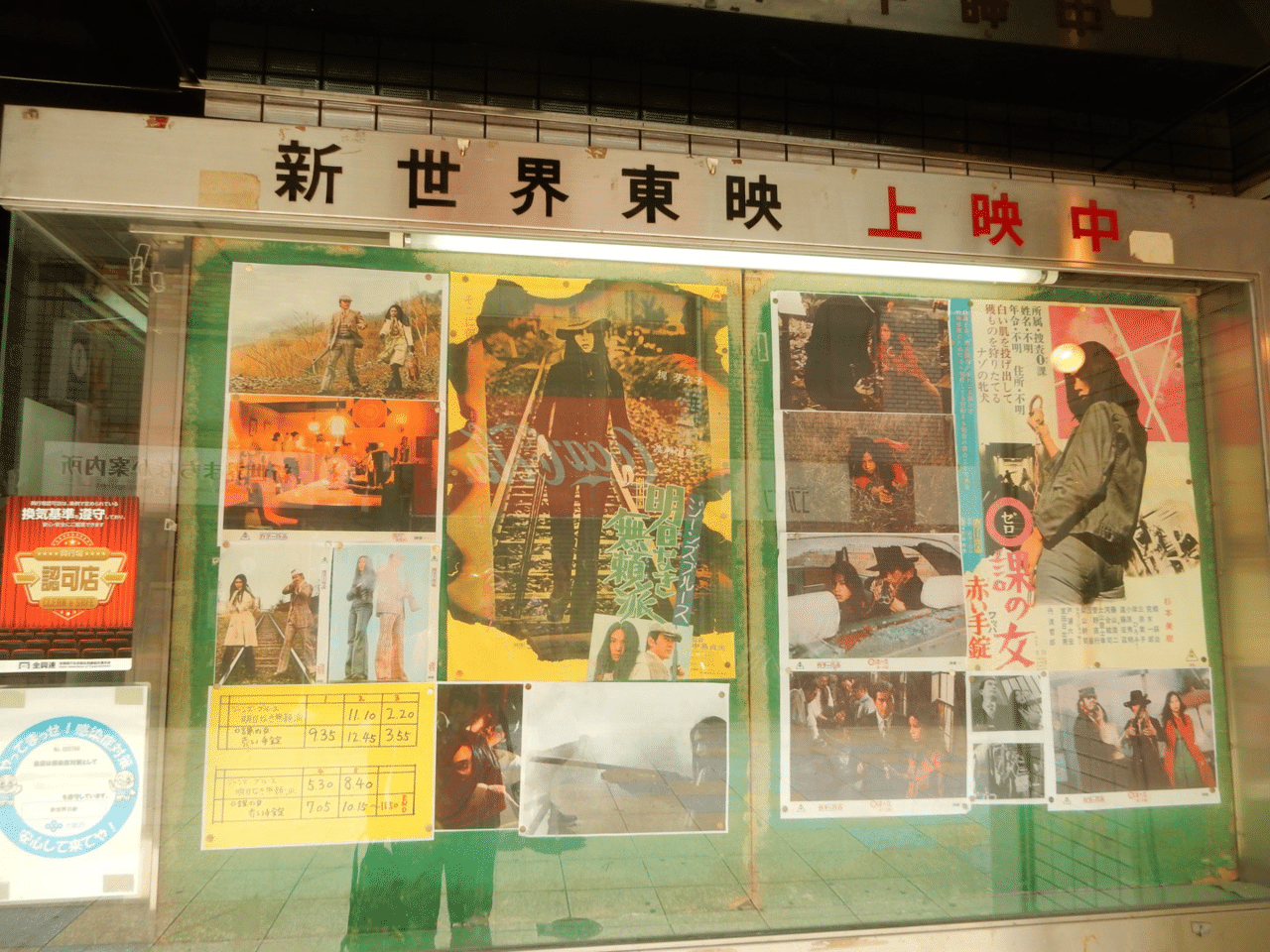 新世界東映の上映作品は『0課の女 赤い手錠』『ジーンズブルース 明日なき無頼派』。共に74年の作品で、いずれ書こうと思っている70年代の映画館を舞台にした小説と同時代。取材代わりにもなる。