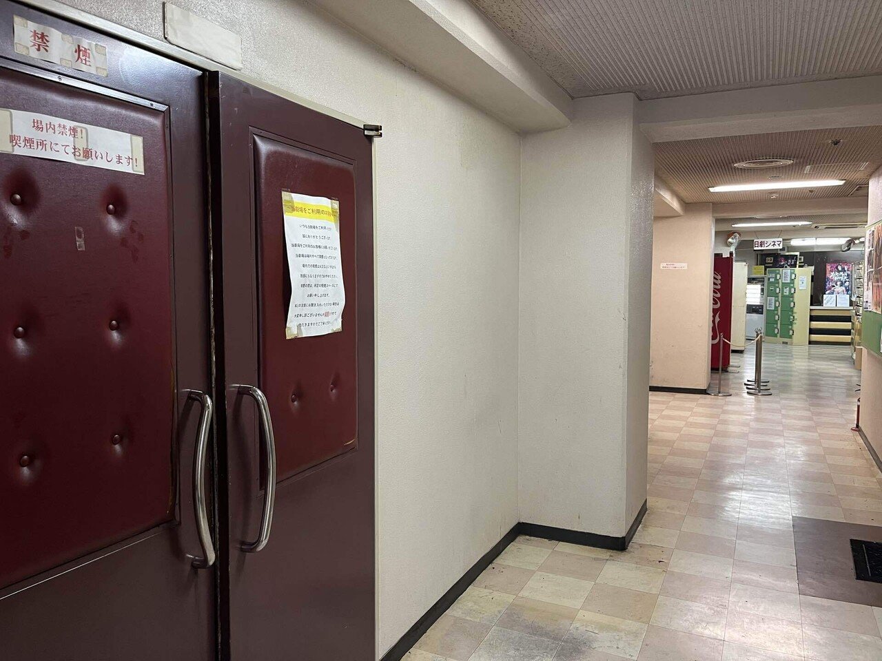 終日見放題で八百円。券売機で買って無表情のもぎりの兄ちゃんに渡すと地下に降りていく。かなり異様な雰囲気。古いトイレやタバコを吸う休憩室があるが、その先が真っ暗。銀幕では男女の交わりが流れているが、席が見ないほど暗い。目が慣れるまで待たなければいけない。