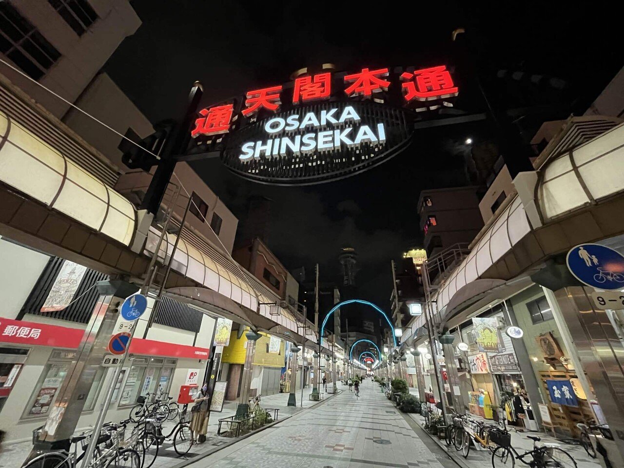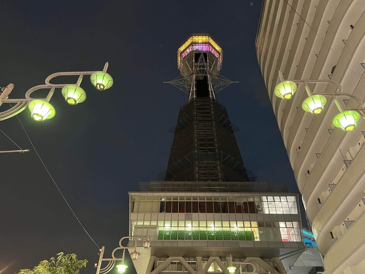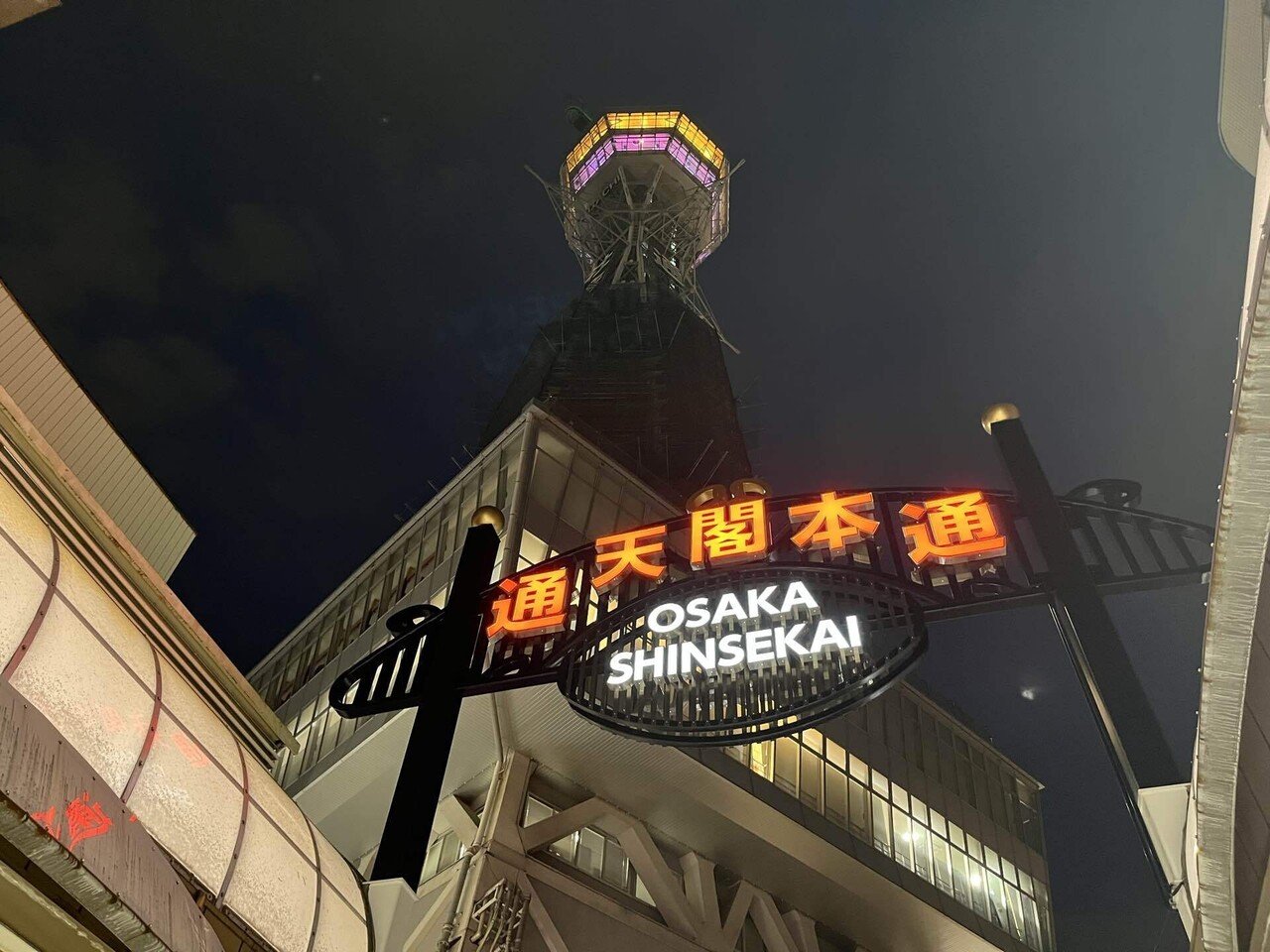 まだ20時なのに暗い。通天閣は2025年の大阪万博に向けて改修工事中。ライトアップは9月まで中止。残念。次に来る楽しみができたから良しとしようか。宿題があるほうが人生は面白い。初日の夜は更けていった。