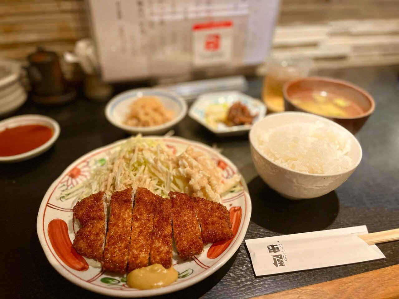 炊き立ての瑞々しいご飯。漬物、おかず、どれも逸品。これで九百円はちょっと申し訳なくもなる。そして主役のトンカツ。衣に和風の出汁が染み込んでいる。なんという旨さ。日本一。