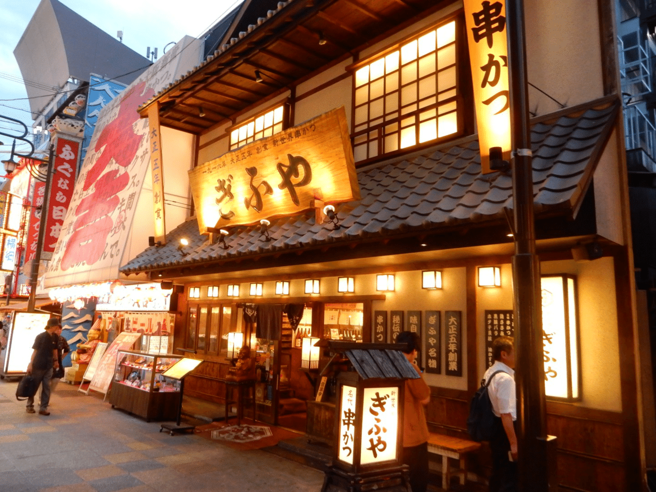新世界に来たら一度、串カツを食べてみたい。大阪の「いってらっしゃいキャンペーン」のクーポンを使える店を探すと、大正5年創業という超老舗。1916年、初代通天閣ができた4年後。店構えは味がある。こういう店があるから新世界はうれしい。