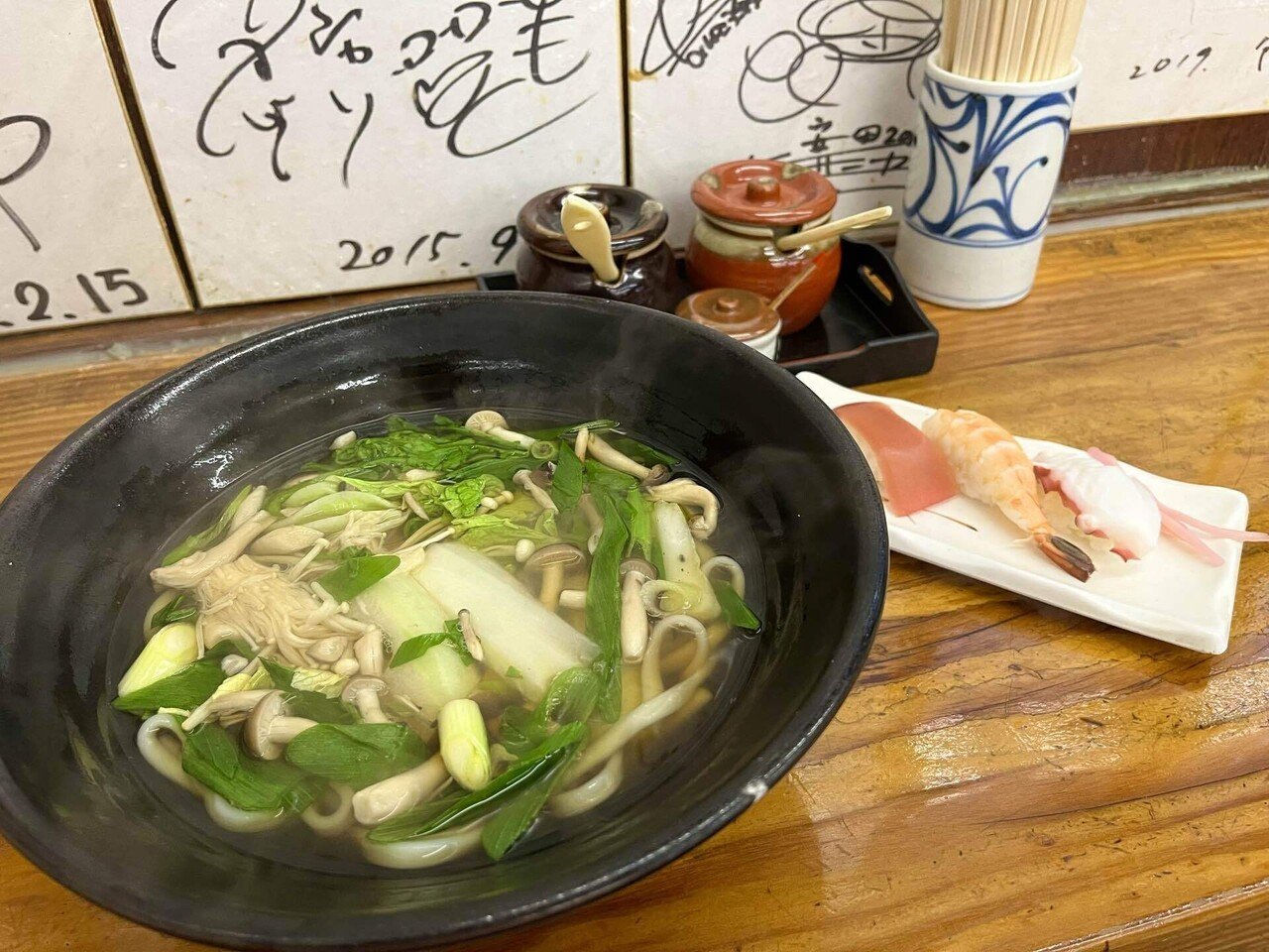 うどんと寿司。この二つが一緒に並ぶ店は、いまどき珍しい。大阪では異端のようでいて、実はこの町の混沌をよく映している。