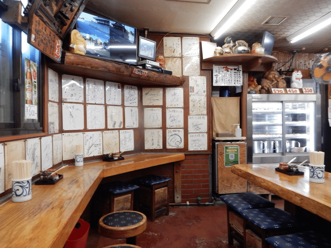 天井の木枠の隙間にはホコリが溜まり、カウンターの角は手の脂で光っている。それらすべてが“老舗の肌触り”になっている。
